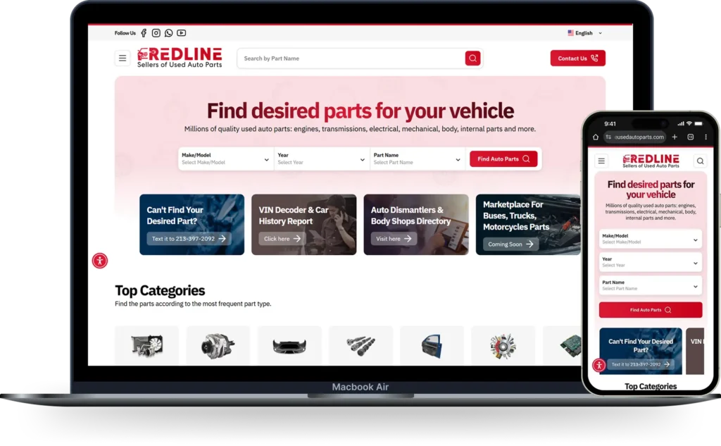 The old CodeIgniter website for B2B supplier Redline Used Auto Parts had become a major problem. Business clients faced slow speeds and hard navigation. A complete technical overhaul was necessary. This involved moving from CodeIgniter to Laravel to build a fast automotive e-commerce platform that could satisfy its knowledgeable users.